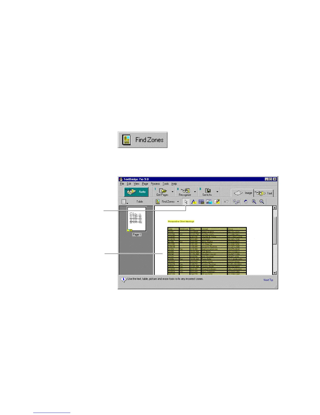 TextBridge automatically finds the zones on the page. Notice that