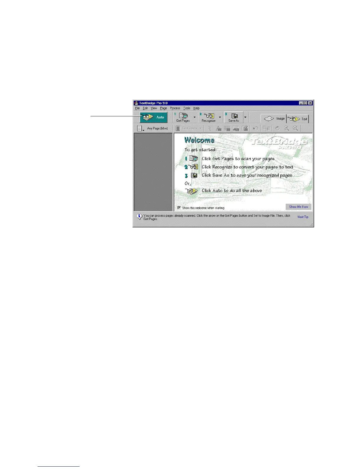 Figure 4–2. Click the Auto button in the TextBridge window
