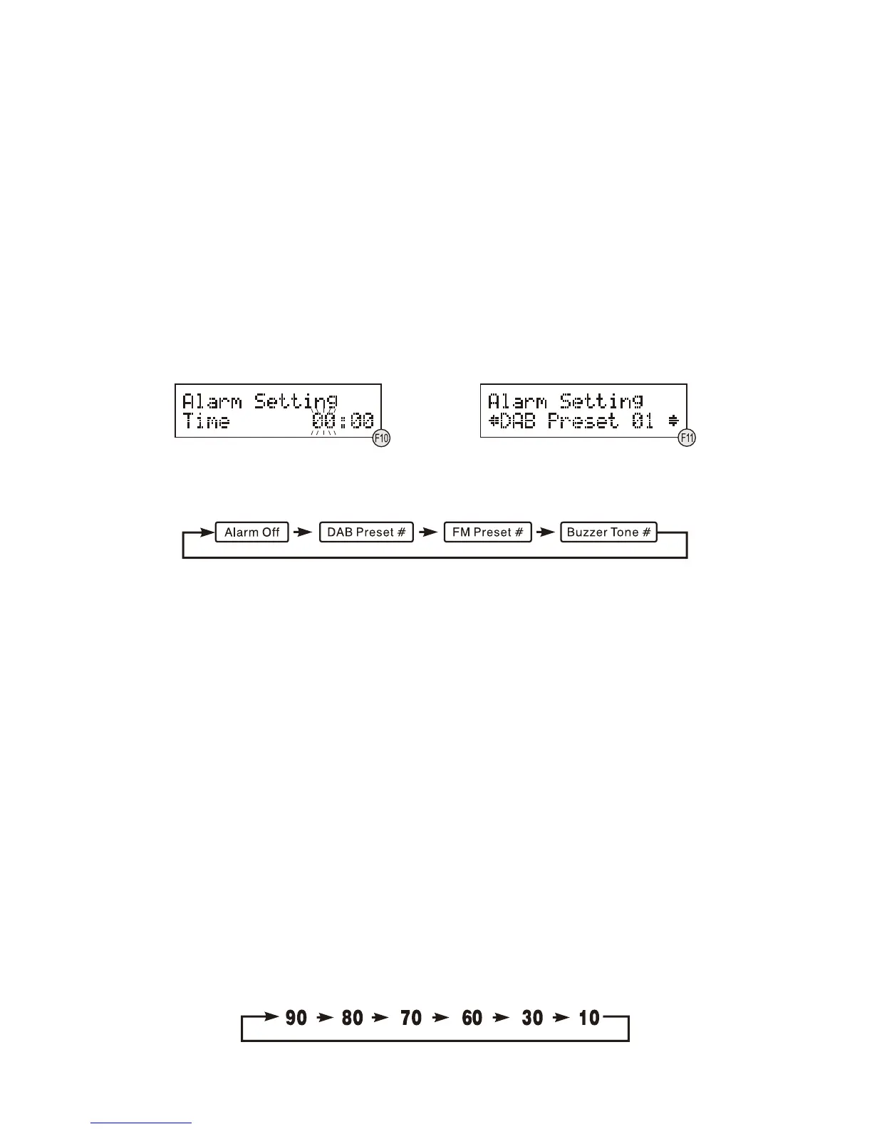 Einstellungen im Weckmodusvorzunehmen - stellen Sie zuerst die DAB Voreinstellung (1-10) und die FM