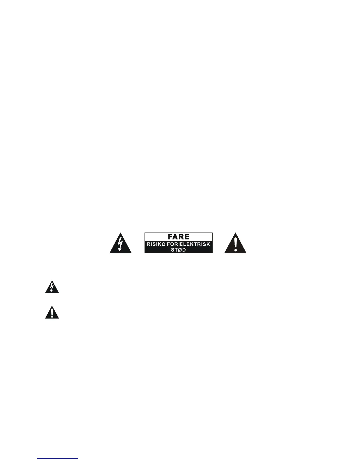 Giv agt! For at reducere risikoen for elektrisk stød, bør du ikke åbne kabinettet. Der er ikke reservedele,