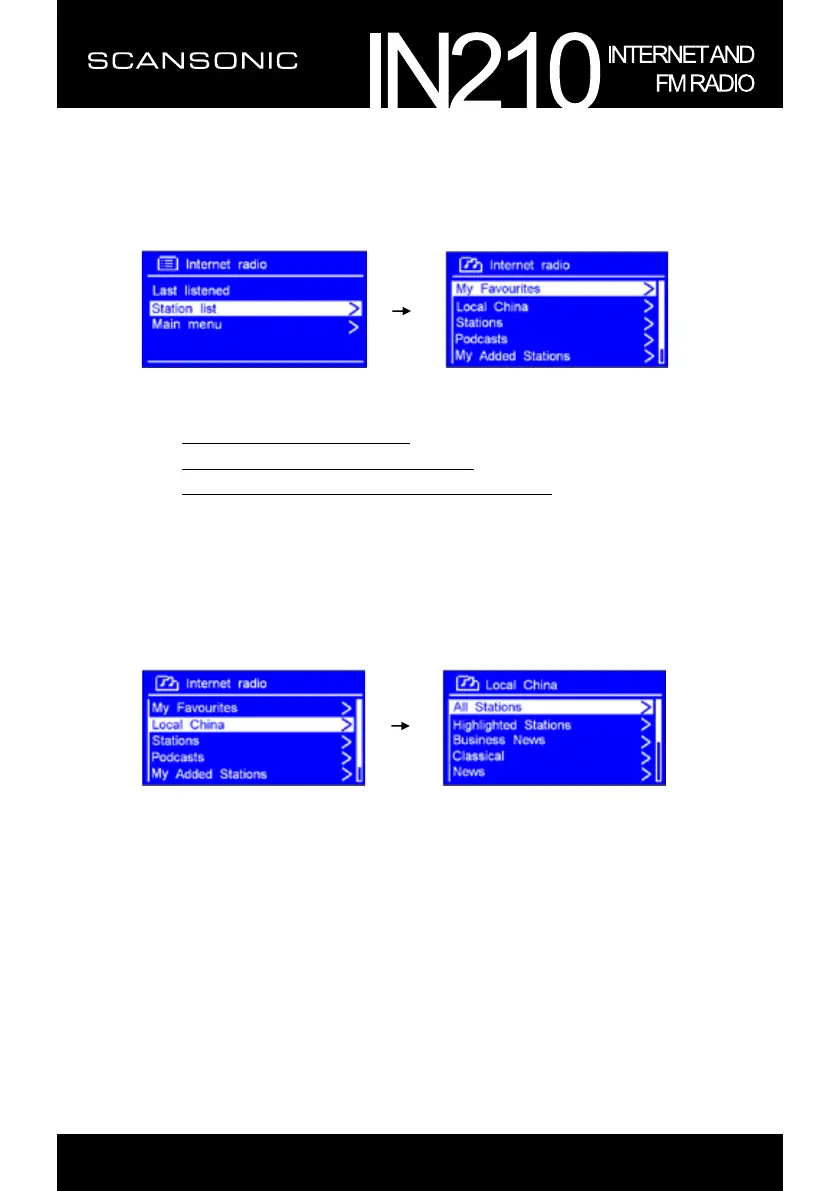 2. Während Station list markiert ist, drücken Sie SELECT/SNOOZE zur Bestätigung.