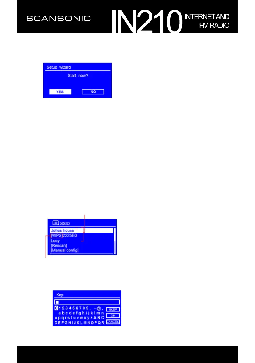 2. Press SELECT/SNOOZE knob to conrm 'YES' to start setup. Options in the setup wizard