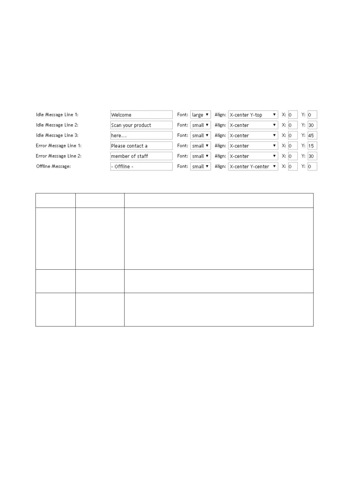 This section allows you to define 3 types of messages: Idle, Error and Offline.