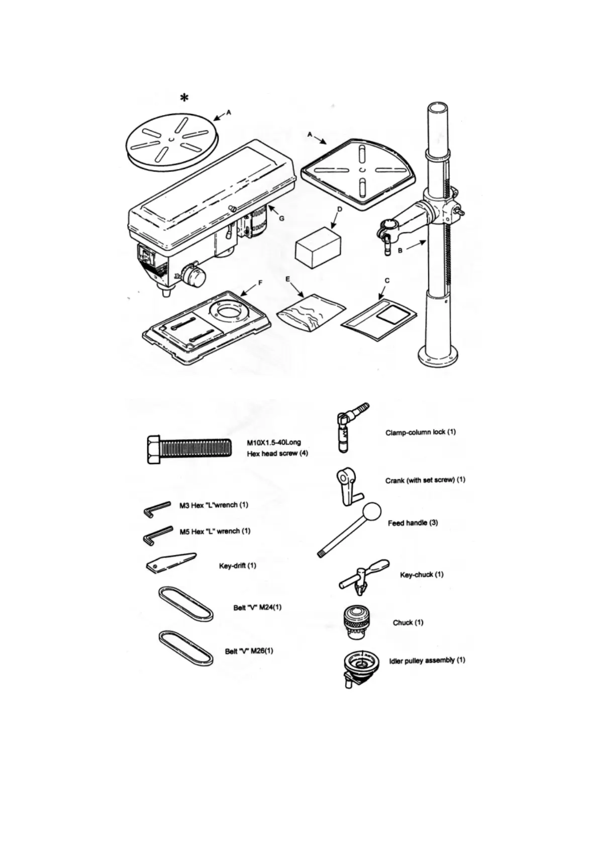 Scantool 16AE - List of Loose Parts in the Box and Bags; Getting to Know Your Drill Press