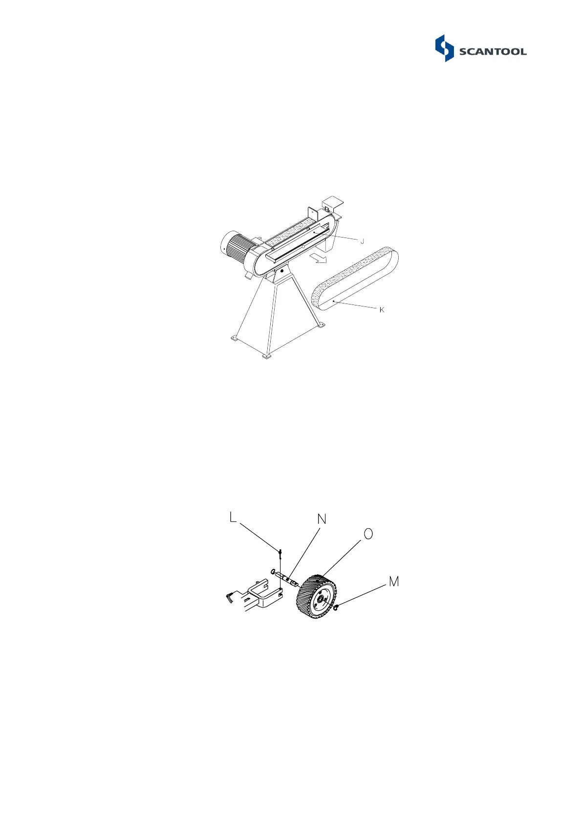 direction (see fig.: 2.1), the cover (J) is opened and the worn-down belt (K) is