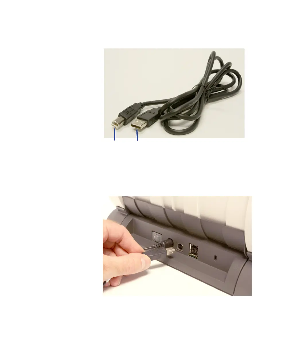 1. Attach the B end of the USB cable to the scanner USB