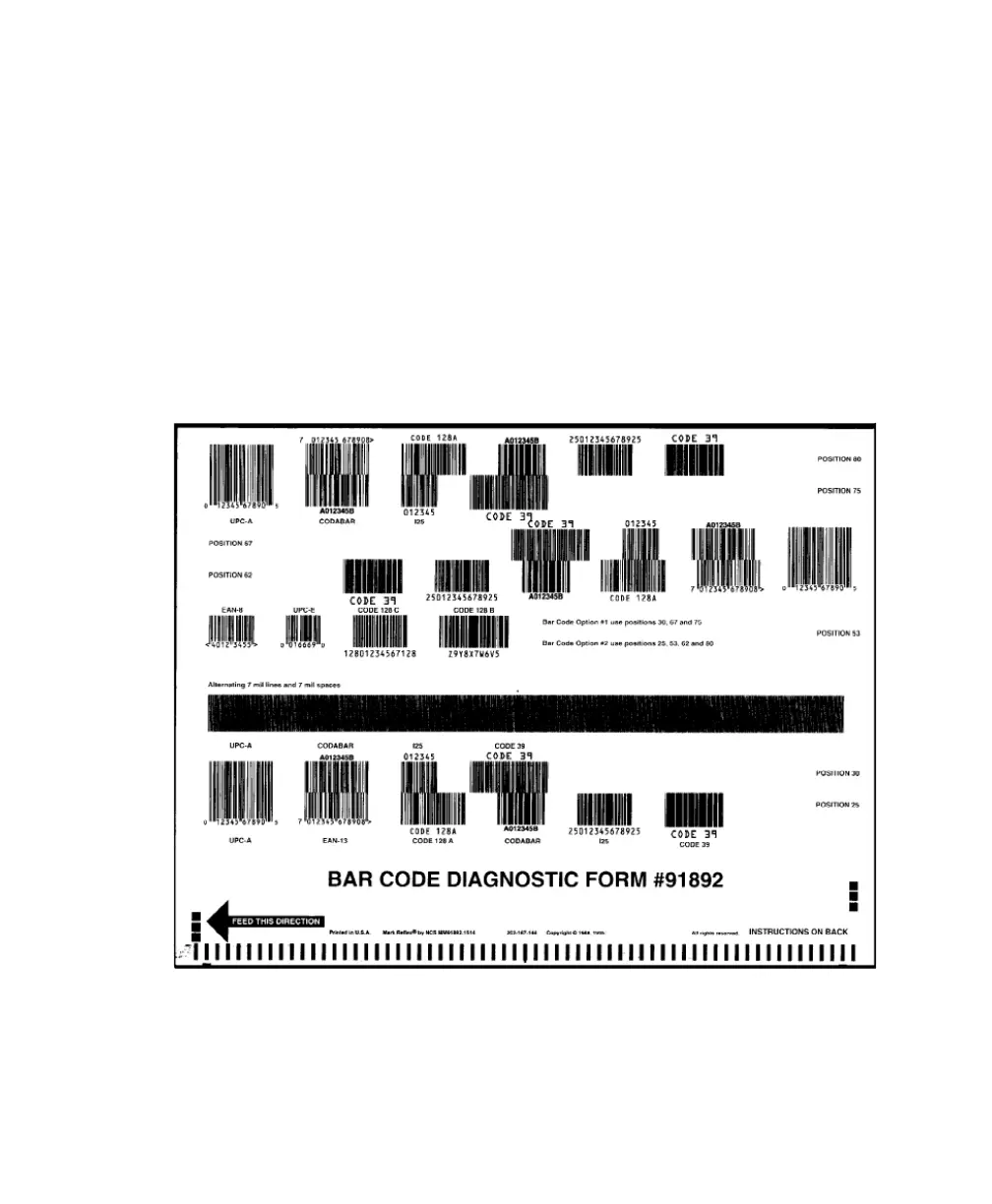 Use bar code diagnostic form #91892 shown below