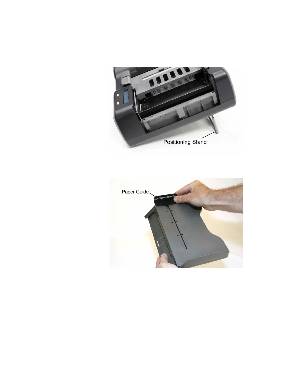 2. Install the paper guide by sliding it into the slot in