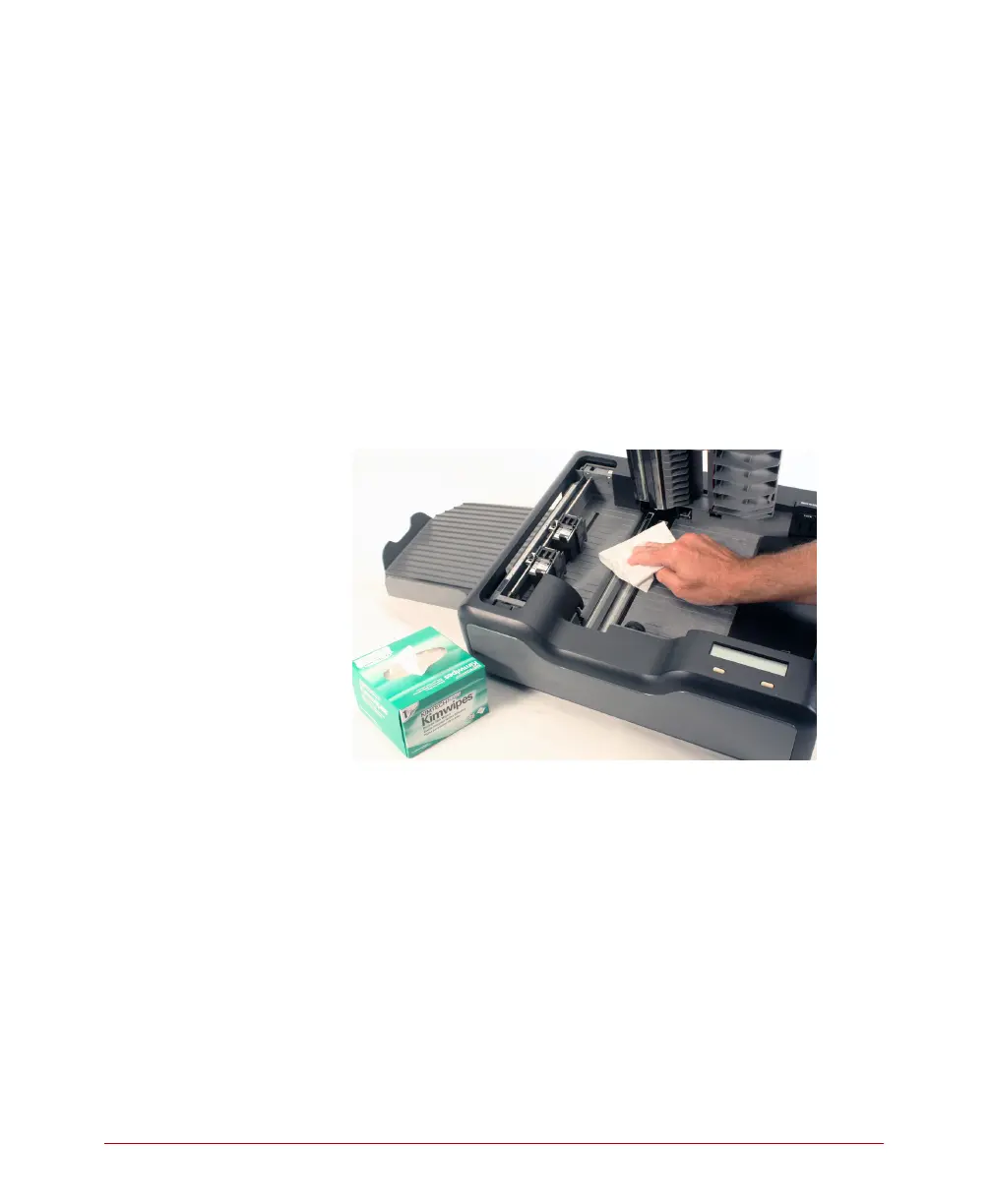 finger, wiping off the roller as you turn it. This