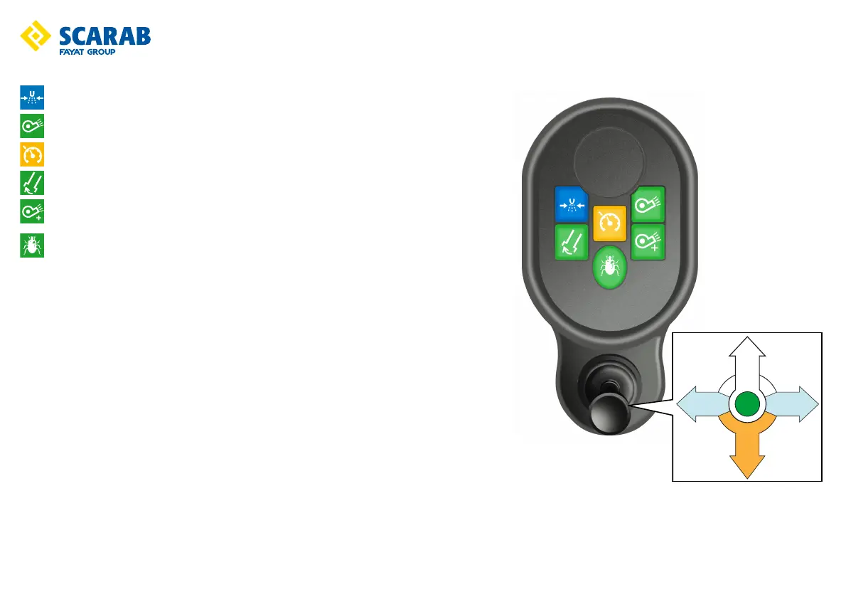 Multi function lever - ON (deploys all selected sweeping equipment). To stop and raise all sweeping