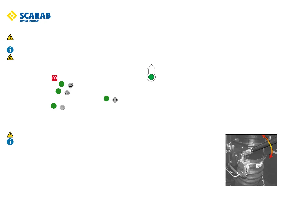 With the sweeper correctly positioned in the discharge area. Proceed as follows.