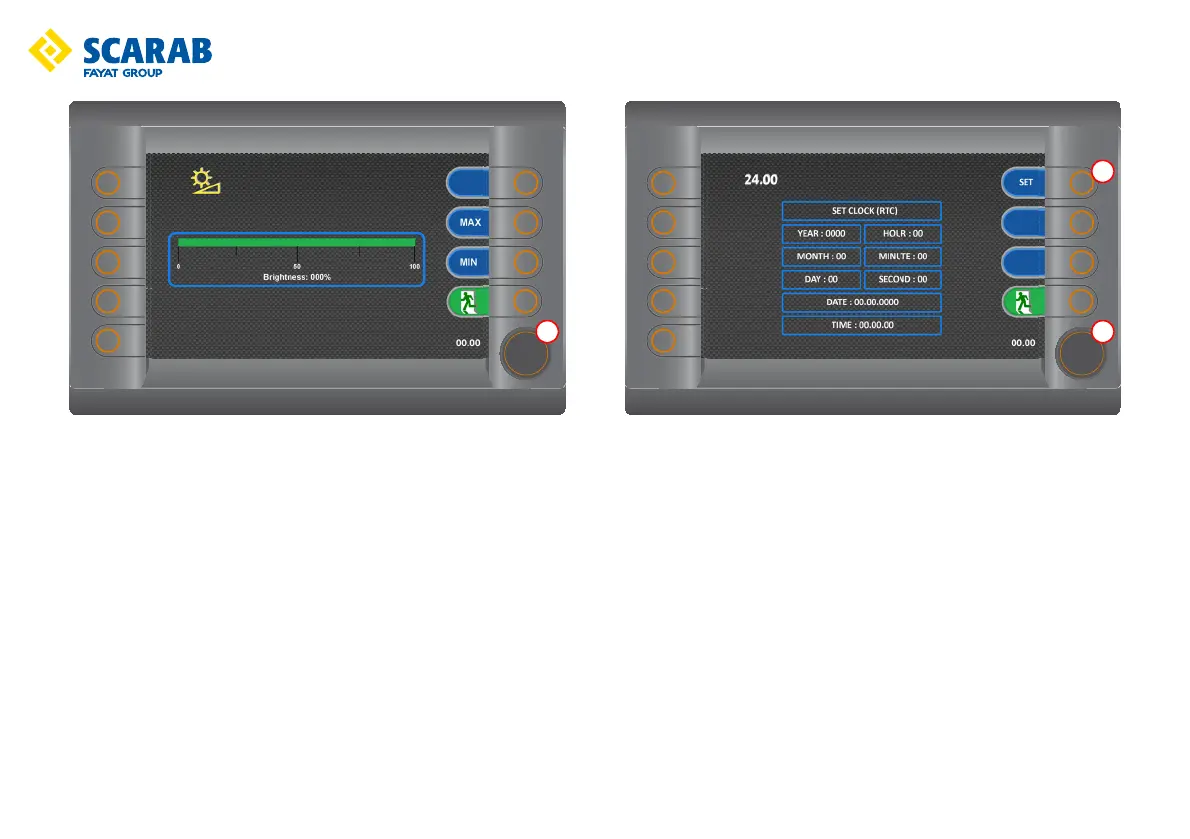 Rotate the encoder t to adjust the screen brightness (2% increments).