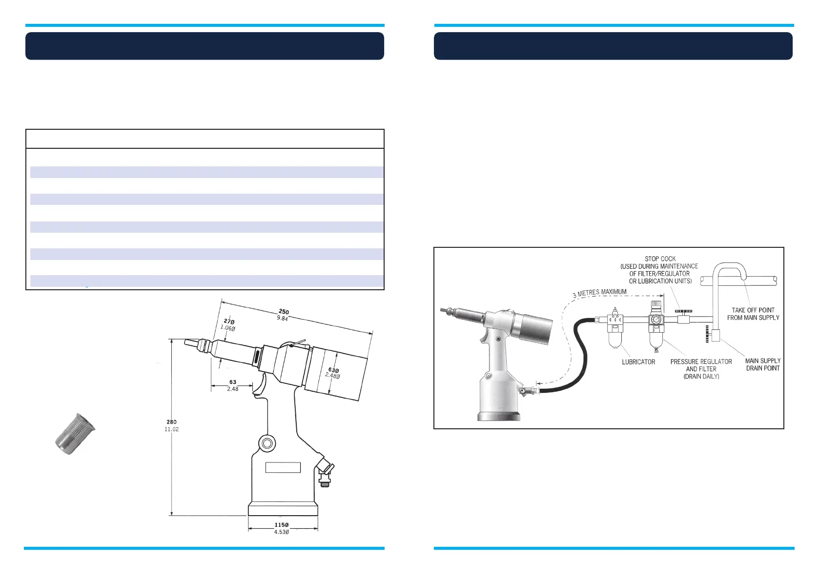 Air Pressure Minimum - Maximum 5-7 bar (75-100 lbf/in’)