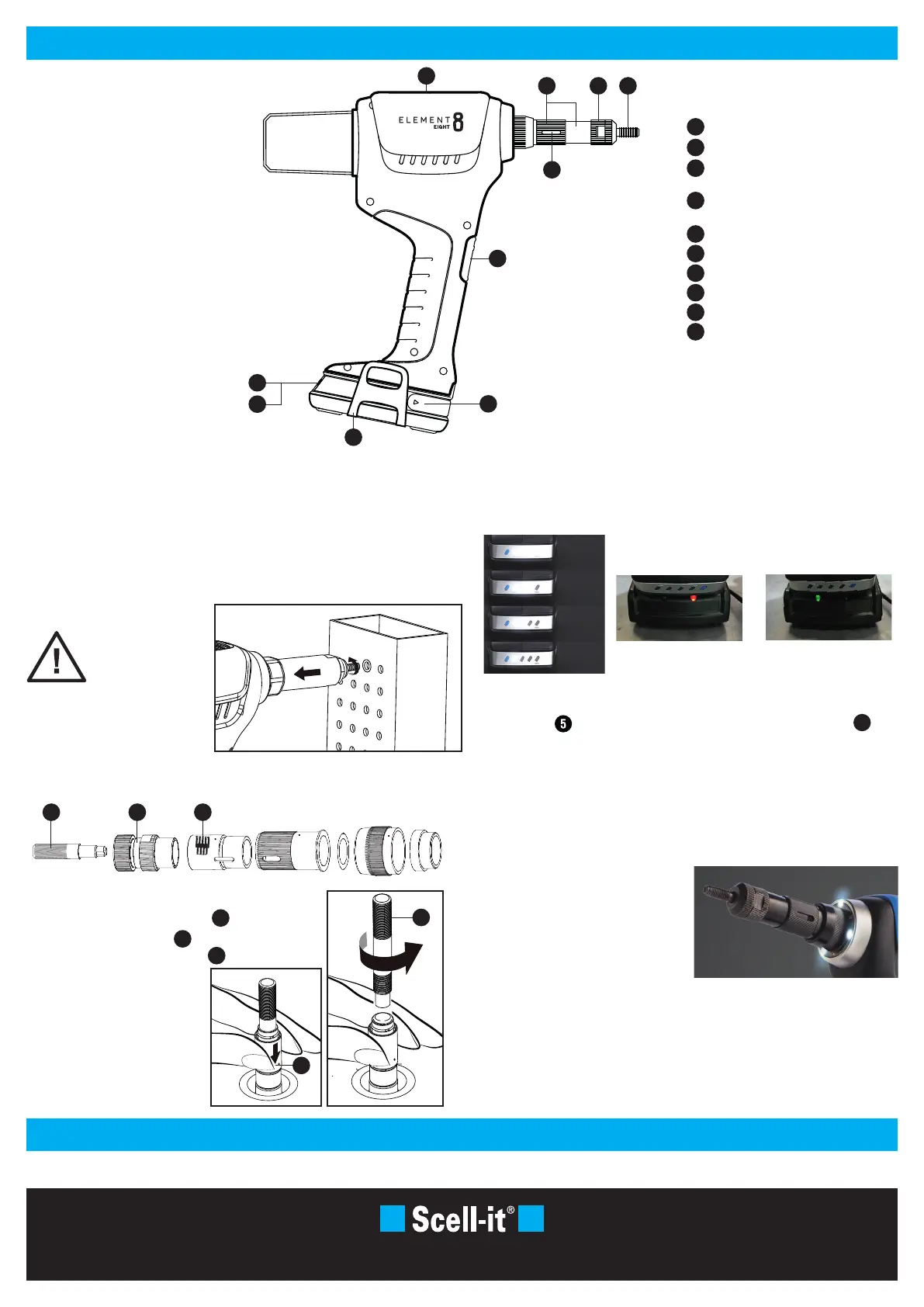 Actionner la gâchette pour sertir le rivet/l’écrou. Les lumières LED