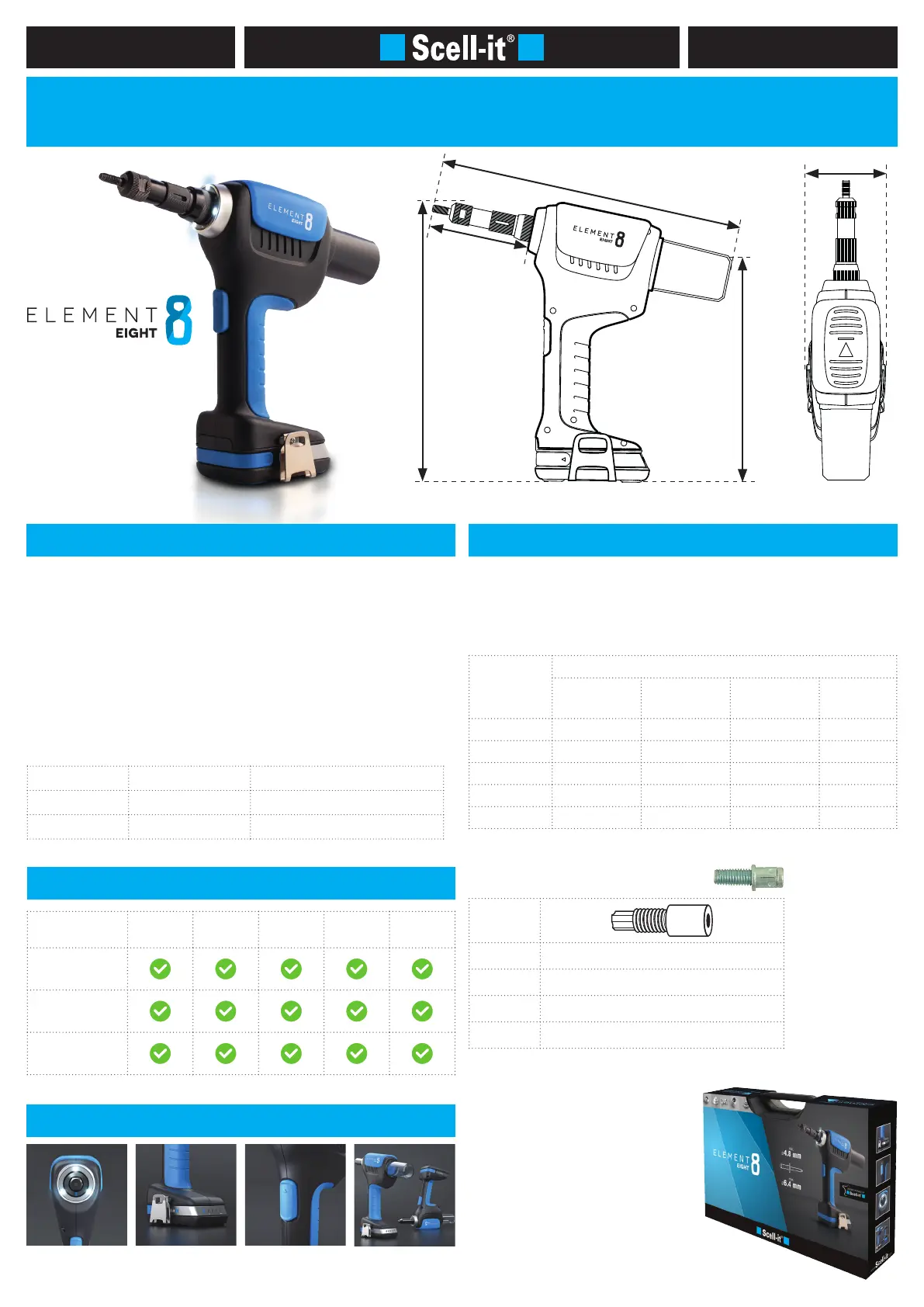 • 5 nosepieces and mandrels M3-M4-M5-M6-M8 for blind nuts.