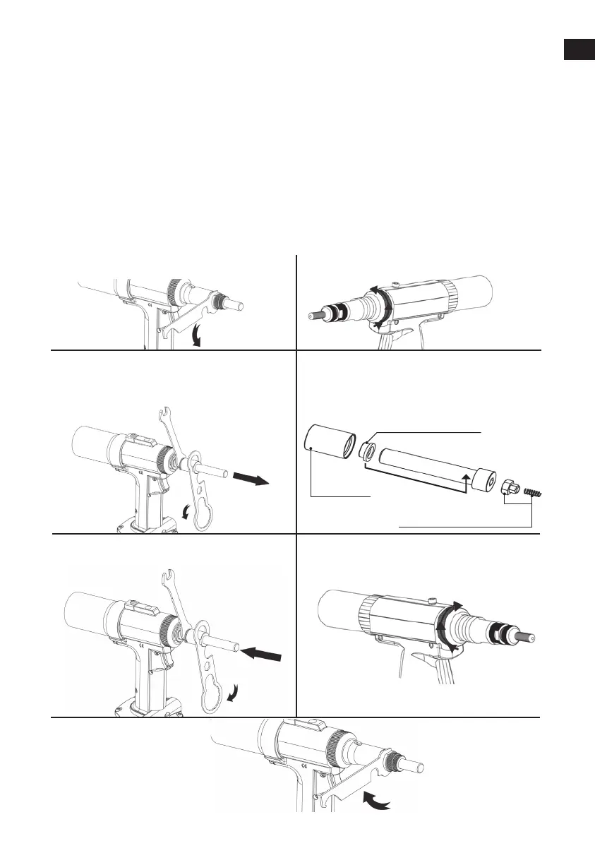 3) To change and use correct cap screw and anvil according to the size of the rivet nut to be set. This tool is