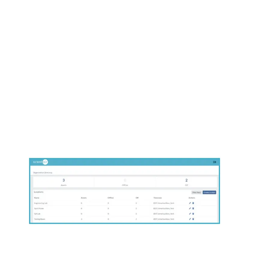 ScentAir devices or assets, the number of assets at each location and