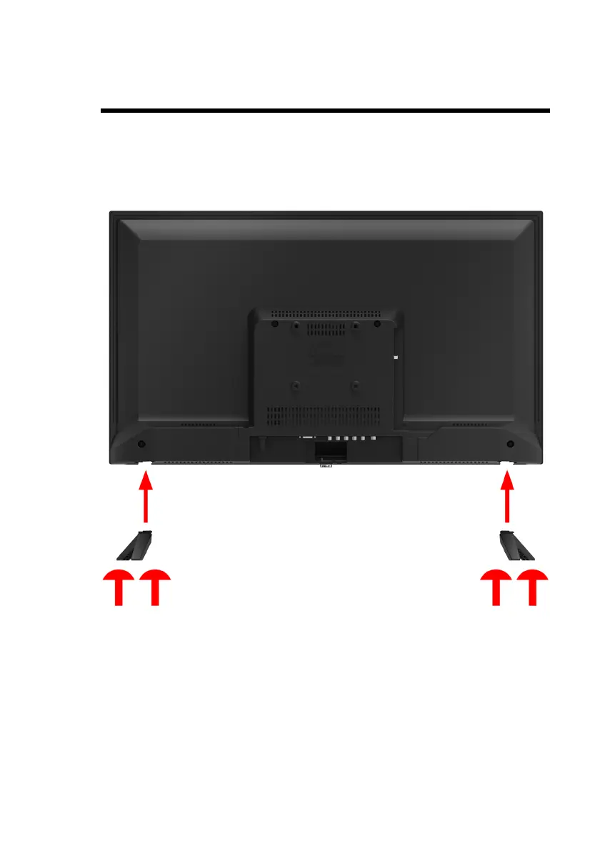 1. To install the 2 display feet, attach them to the bottom of the display and screw in