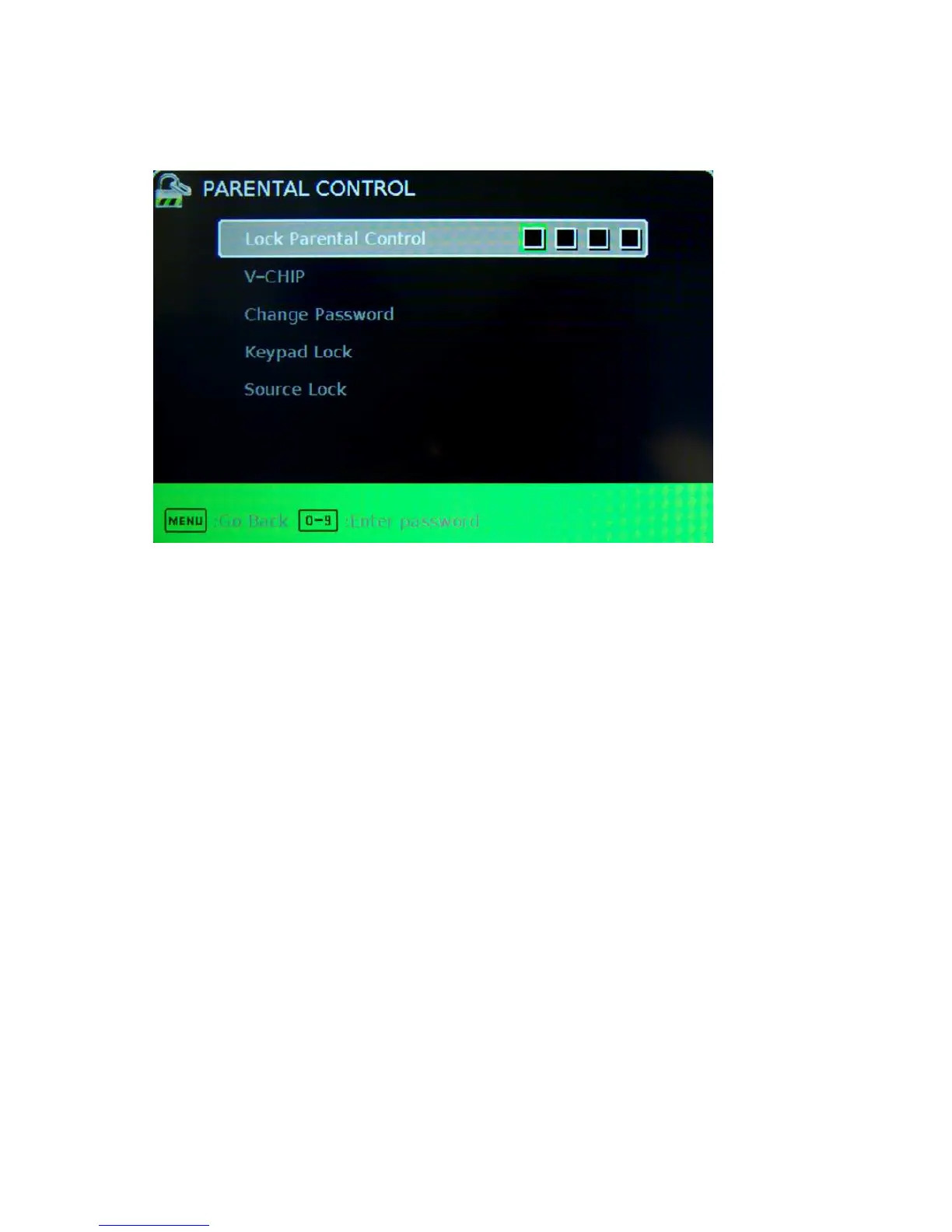 I. LOCK PARENTAL CONTROL – This feature allows you to input a password