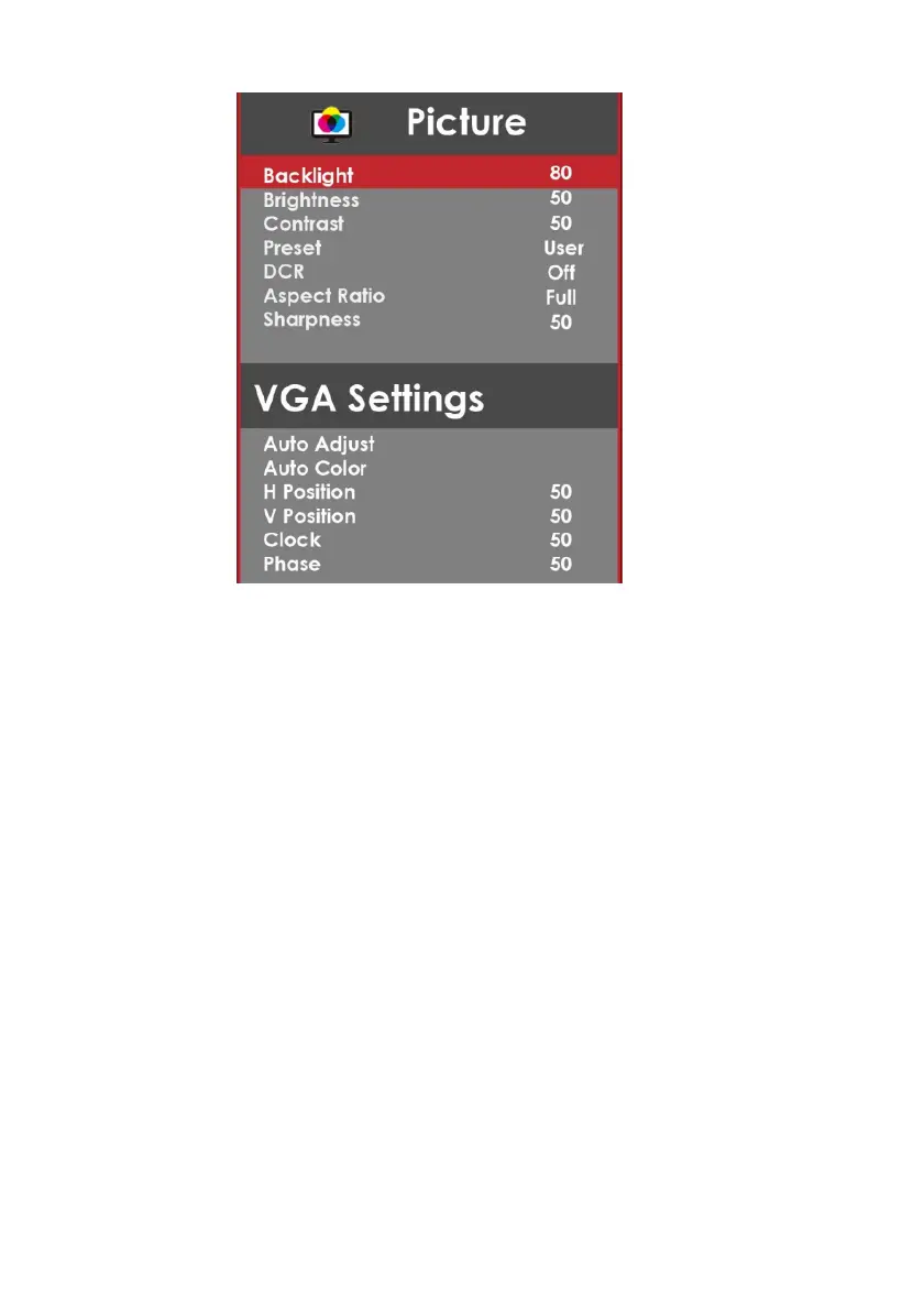 1. BACKLIGHT - This option adjusts the intensity of the LED diode directly.