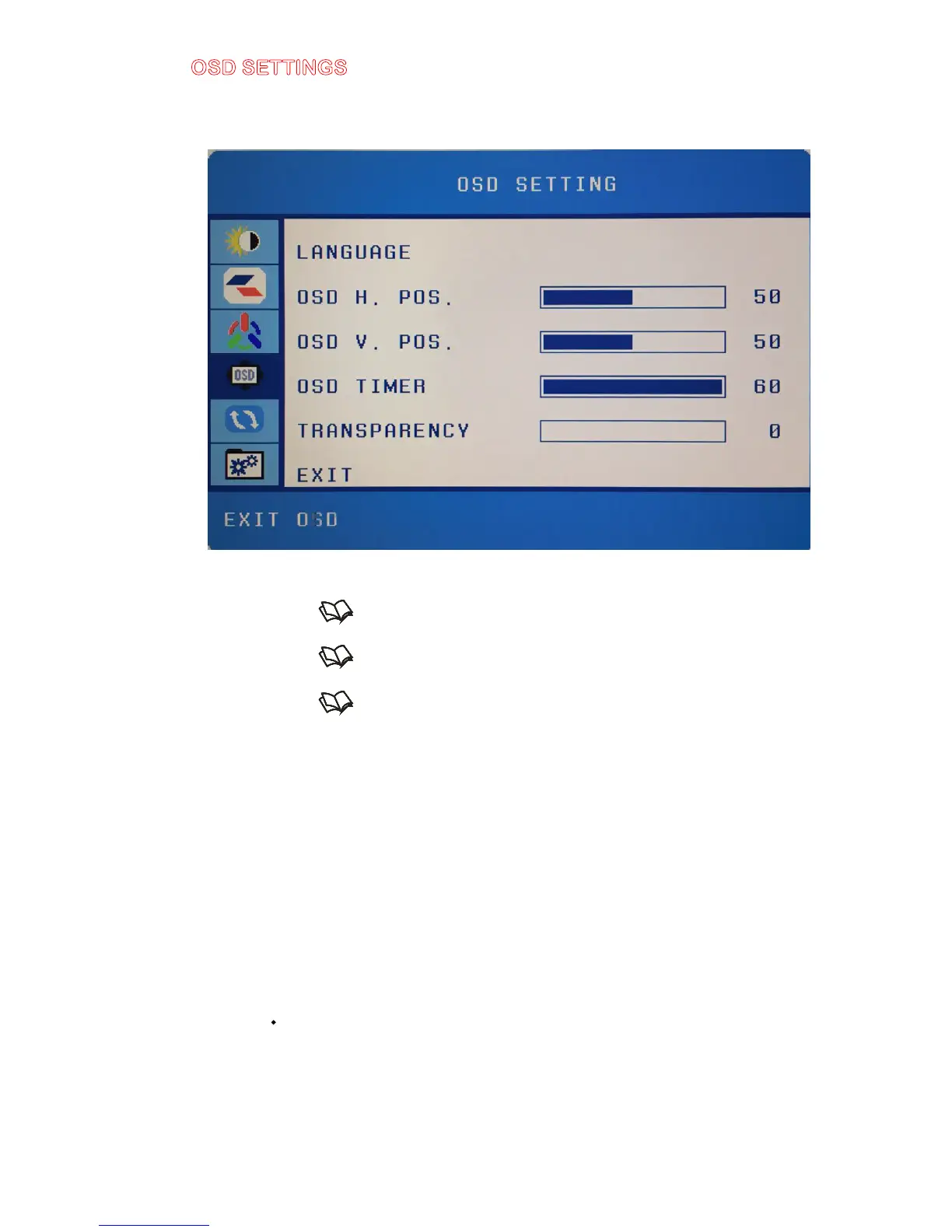 1. Press to open the OSD then highlight OSD SETTINGS by pressing the