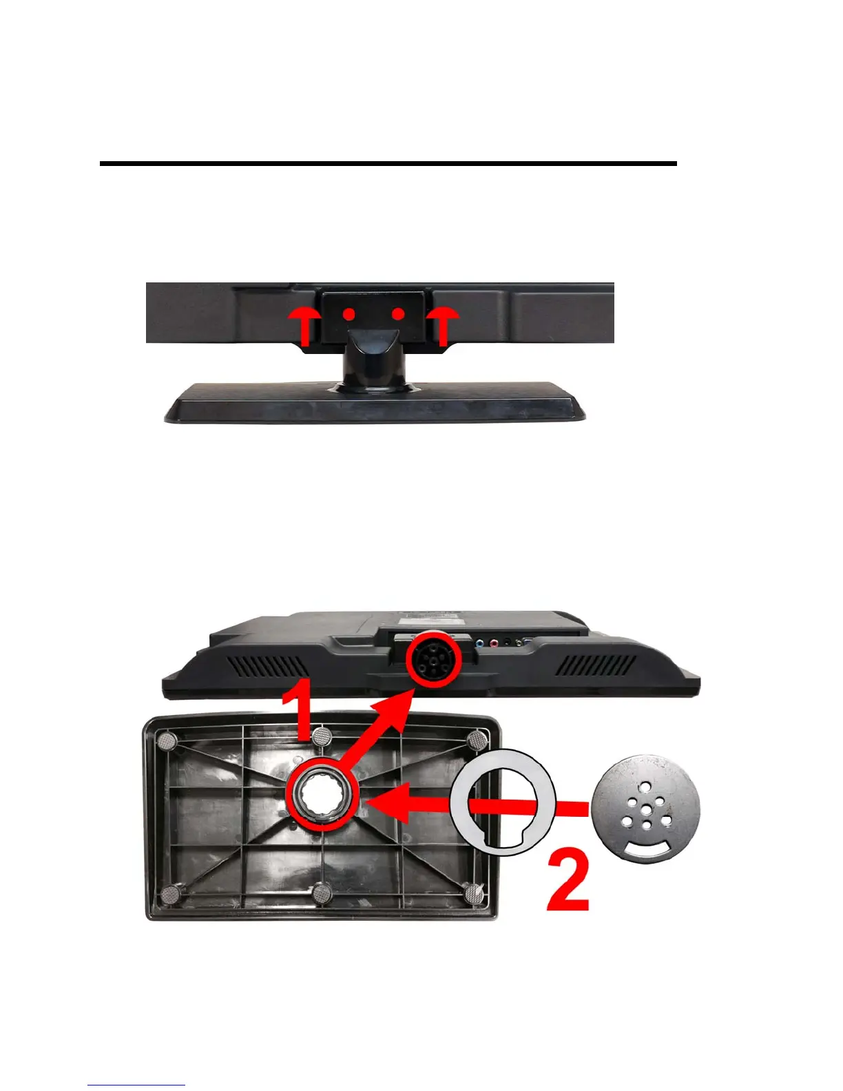 2. To attach the base plate, lay the display unit flat on a table. Afterwards attach the