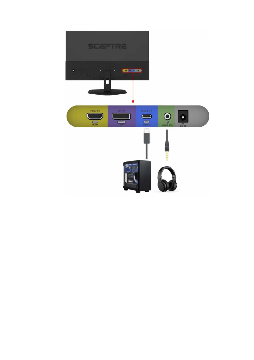 2. Obtain a Type-C cable and connect one end to the back of the monitor