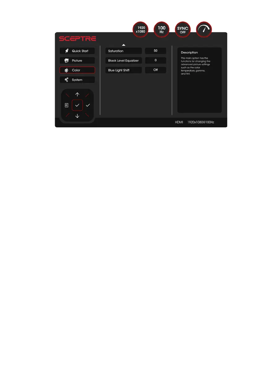 4. SATURATION This option adjusts the color saturation level.