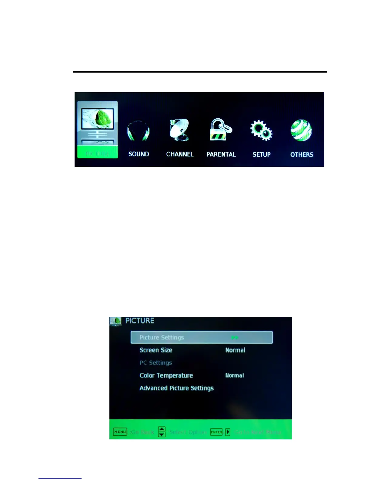 This option allows users to adjust the TV’s picture sharpness, color, tint, and other