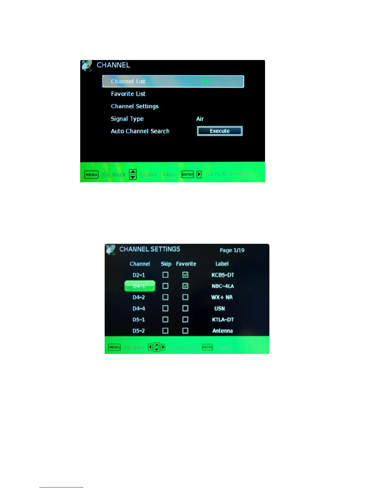 I. CHANNEL LIST – This feature gives you the list of channels currently found