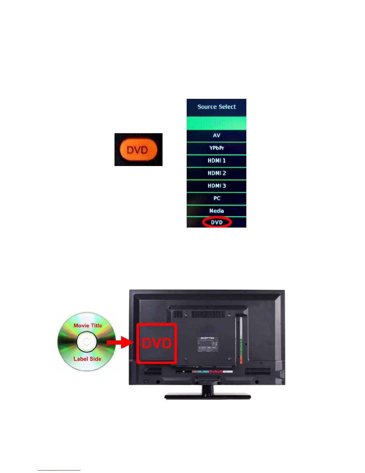 the front of the TV, insert the DVD disc with the side that is labeled with