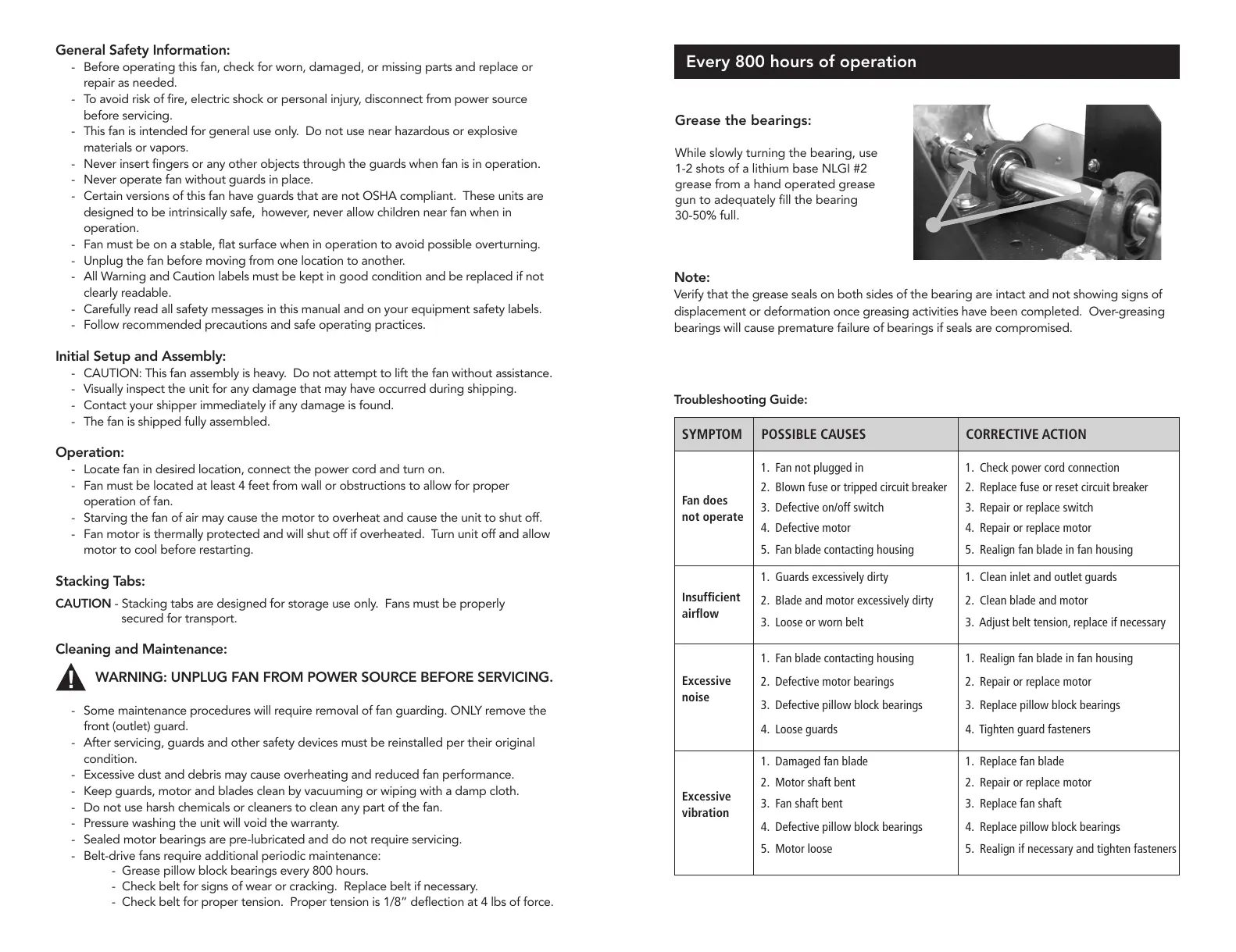 - Certain versions of this fan have guards that are not OSHA compliant. These units are