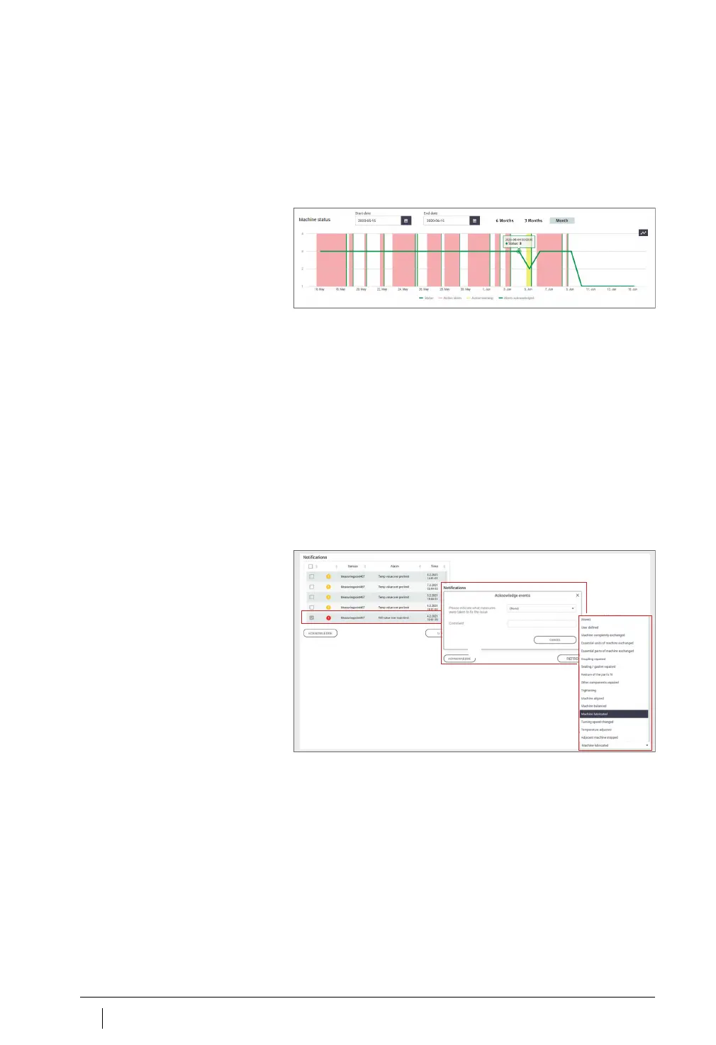 Alarm notifications for the machine