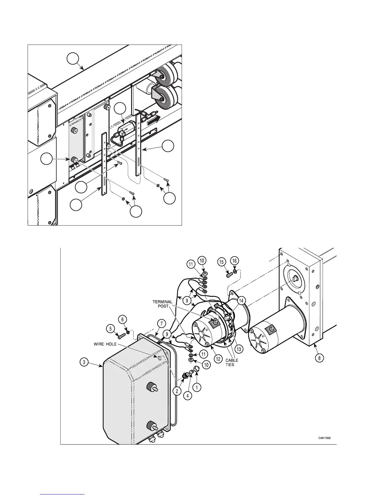 (3) Feed wires (9) thru wire hole in motor cover (3).