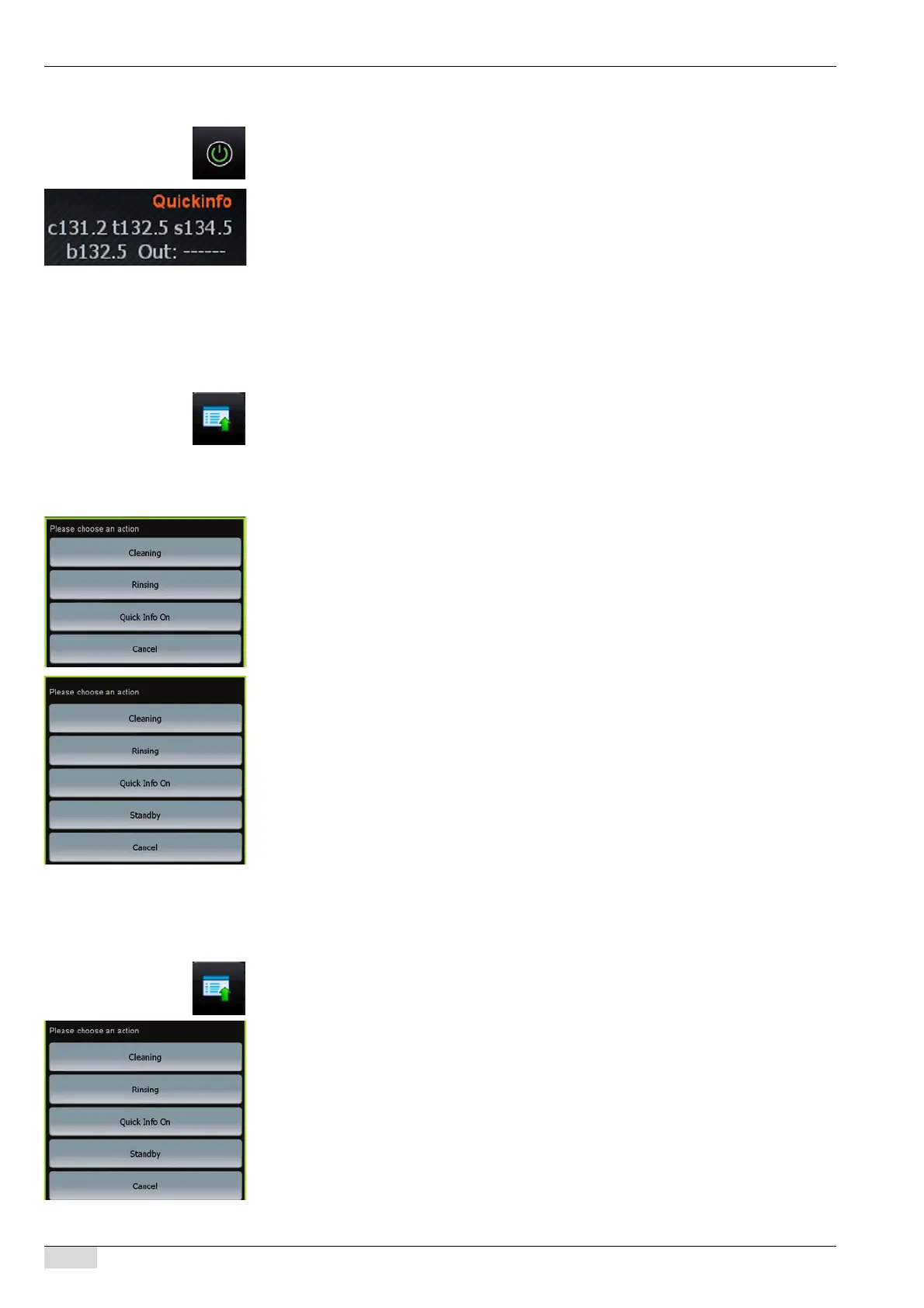 • [Rinsing] starts a machine rinse.