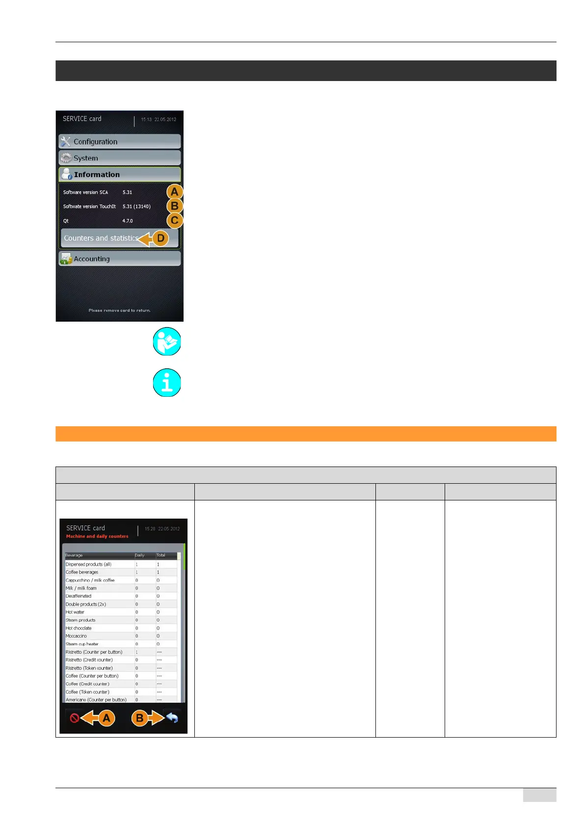 • Counters and statistics submenu (D)
