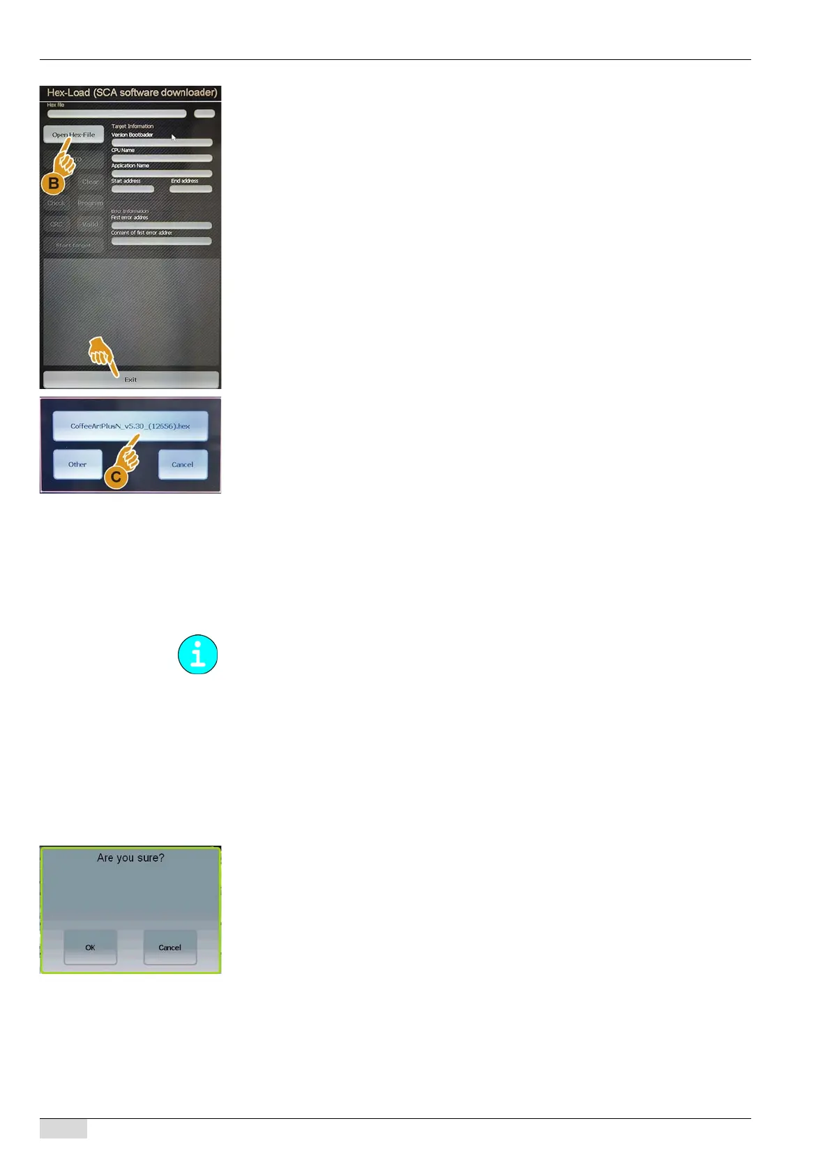 The touch screen display changes to the "Hex load (Update SCA Software download-