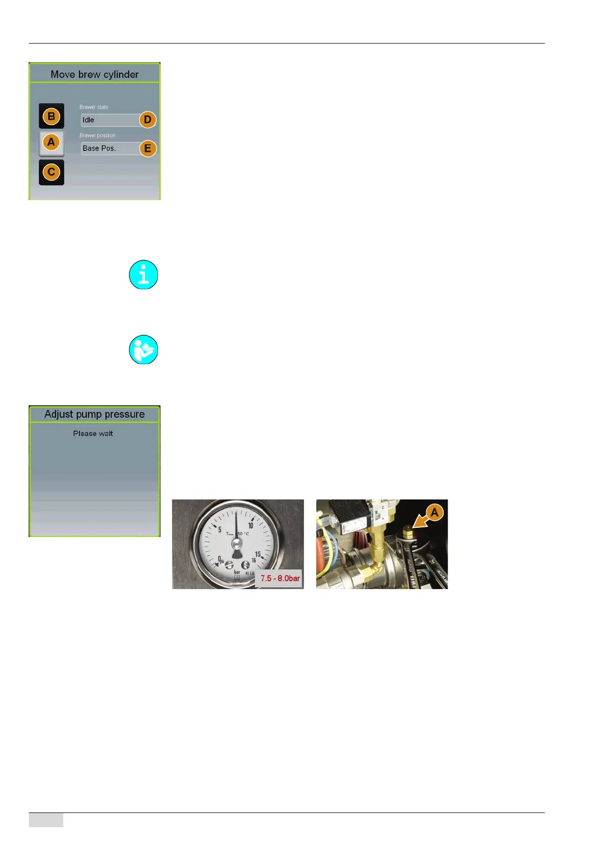 ► Adjust the pump pressure at bypass (A) so that the manometer reads between 7.5 bar and
