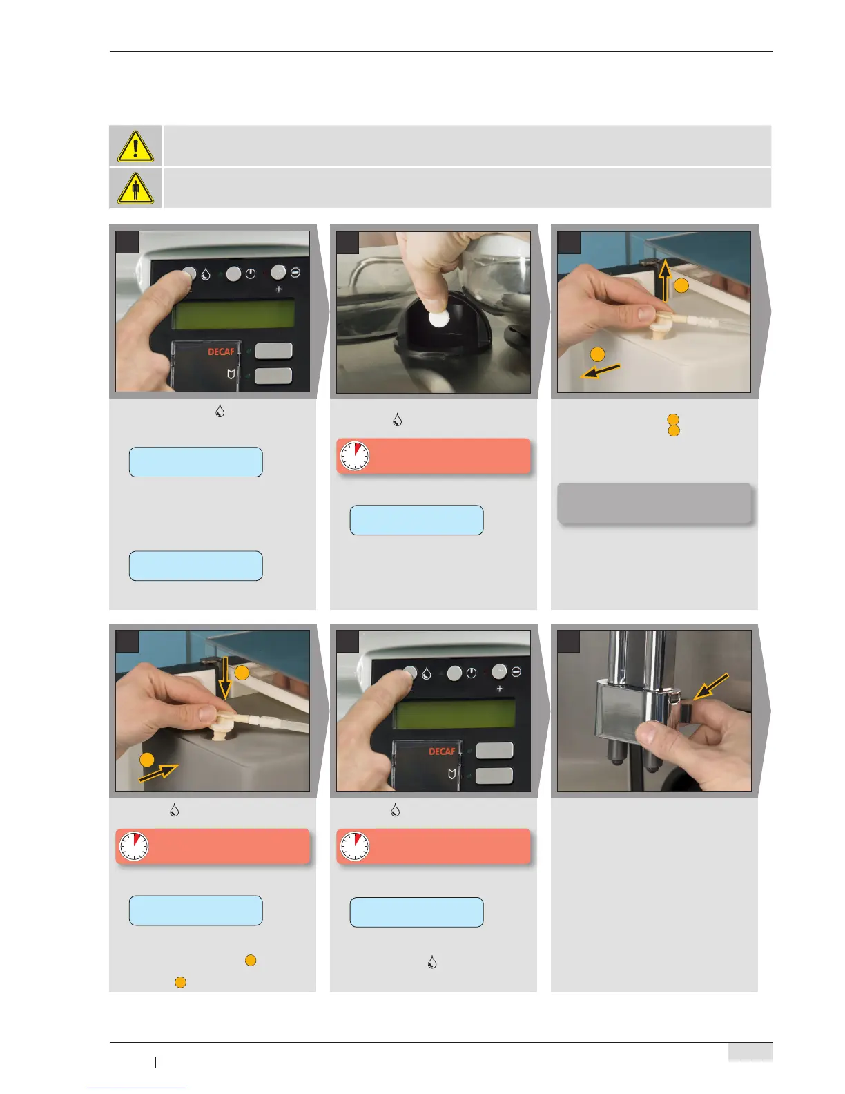 Never reach into the machine or under the beverage outlets during the automatic cleaning!