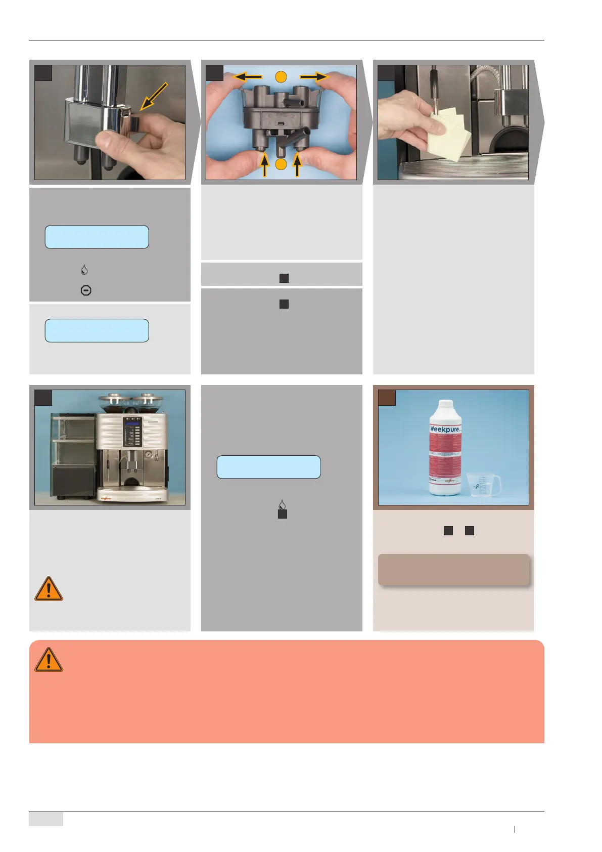 Never reach into the machine or under the beverage outlets during the automatic cleaning!