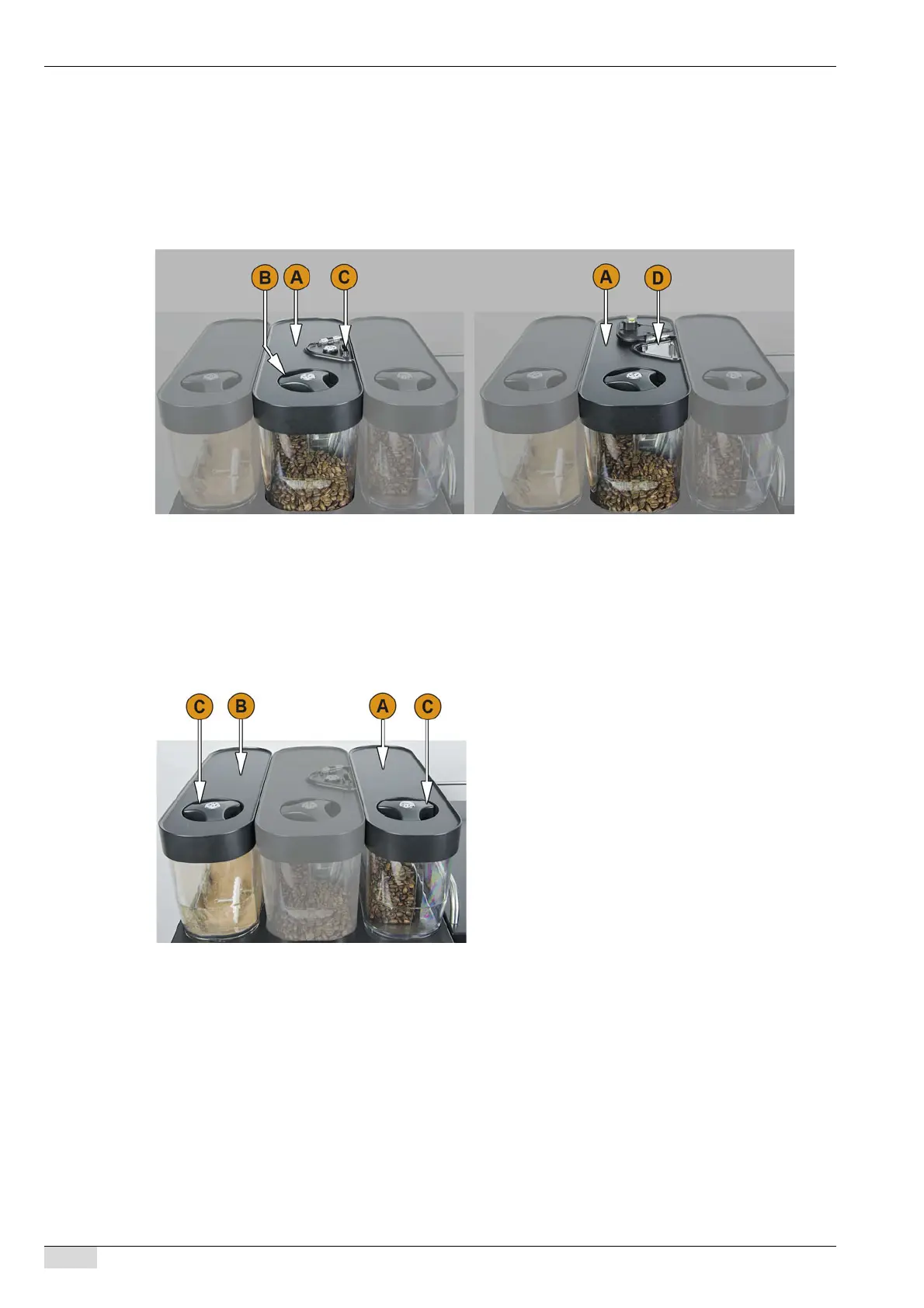 • [A] Additional bean hopper on the right, e.g. for espresso (1200 g)