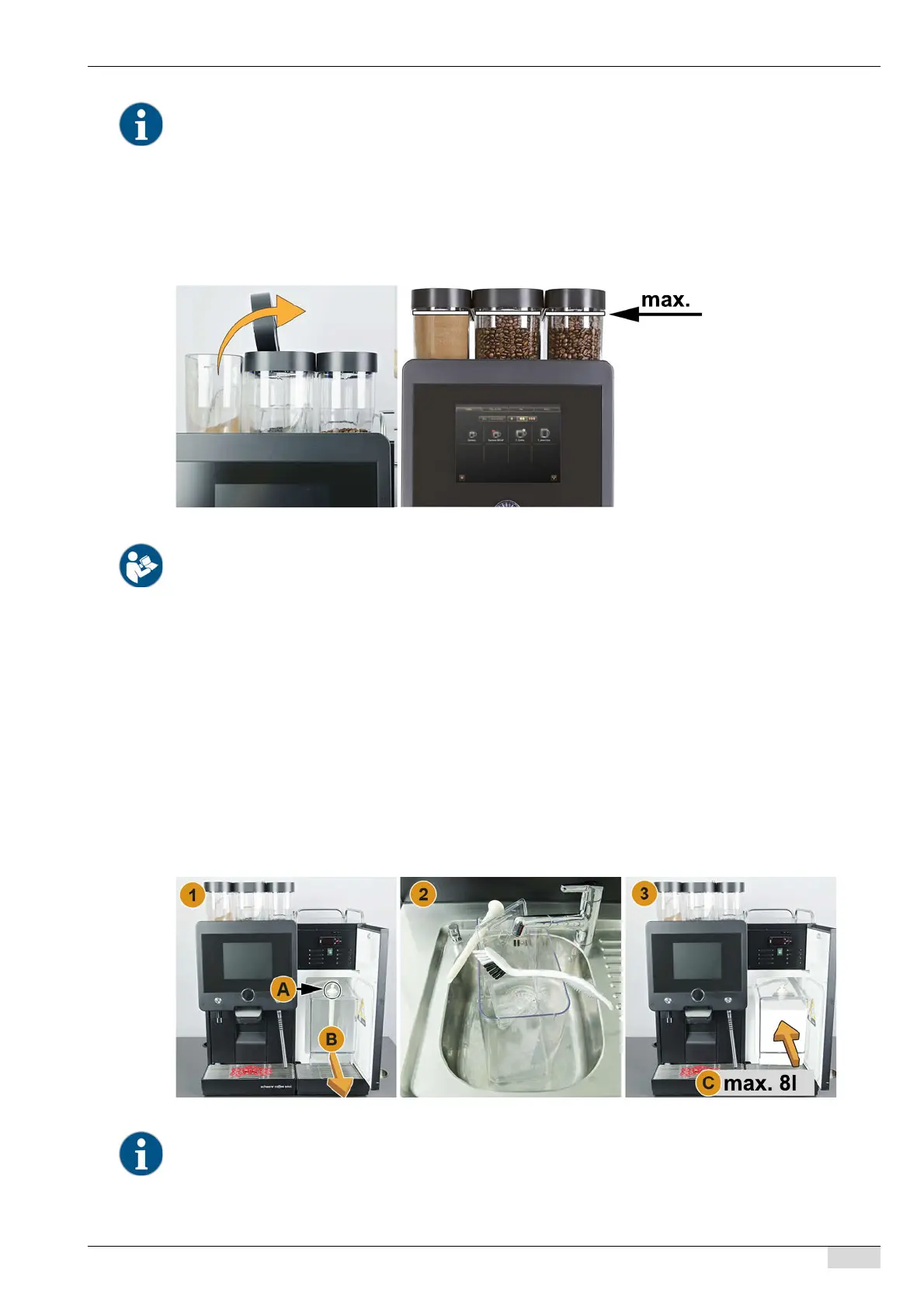 ► Pour in milk, observing the max. fill level of 8 l [C ].