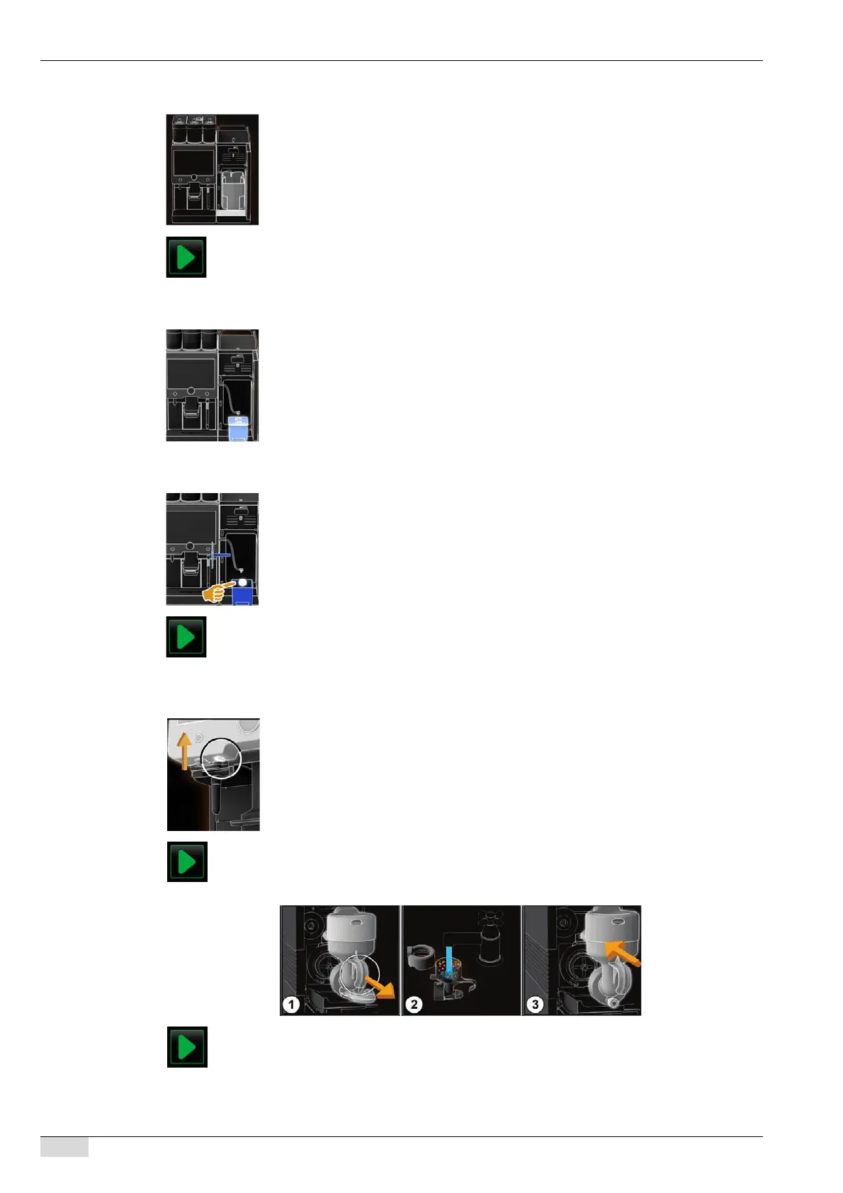 ► Confirm removal and cleaning of the milk container with the [>] field.