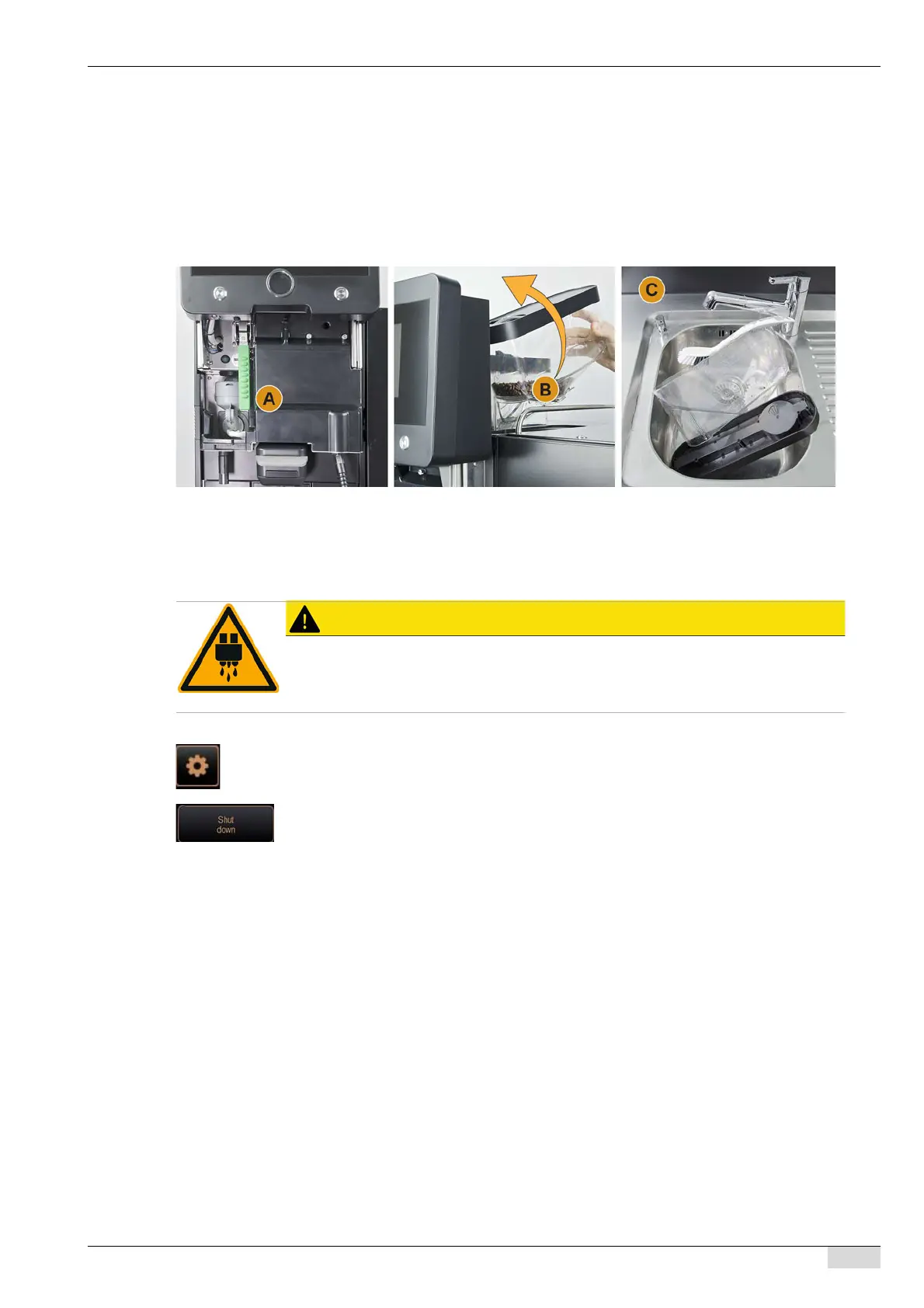 ► Rinse bean hopper thoroughly under running water [C] and wipe clean using a soft cloth.