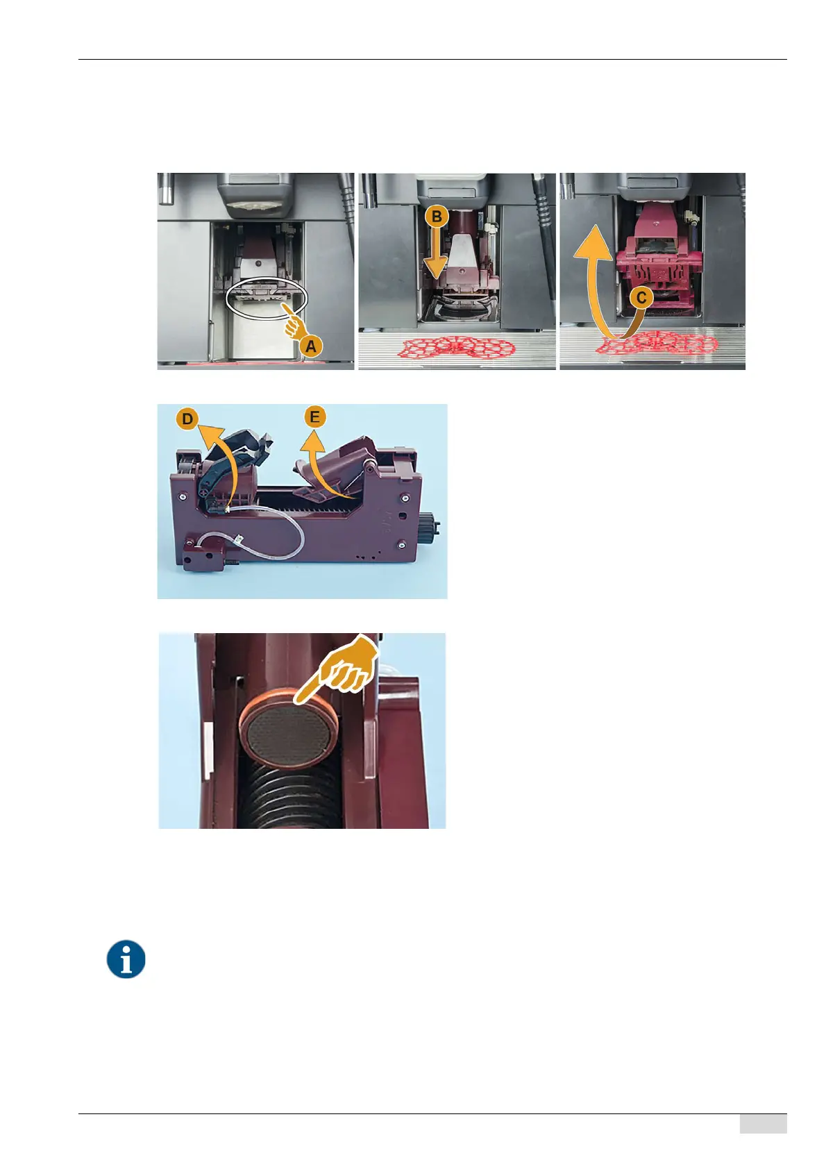 ► Pull the unlocked brewing unit down [B] while swinging it forward [C] out of the machine.