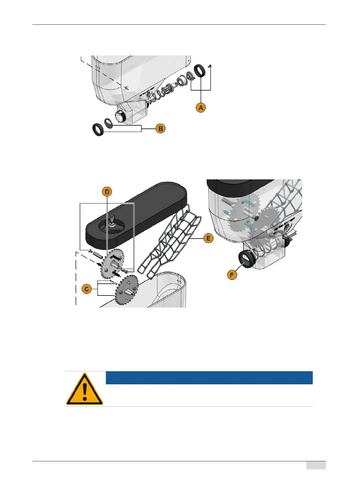 ► Disassemble the upper toothed wheel by removing the two screws [D] (size 2) and axle guidance.