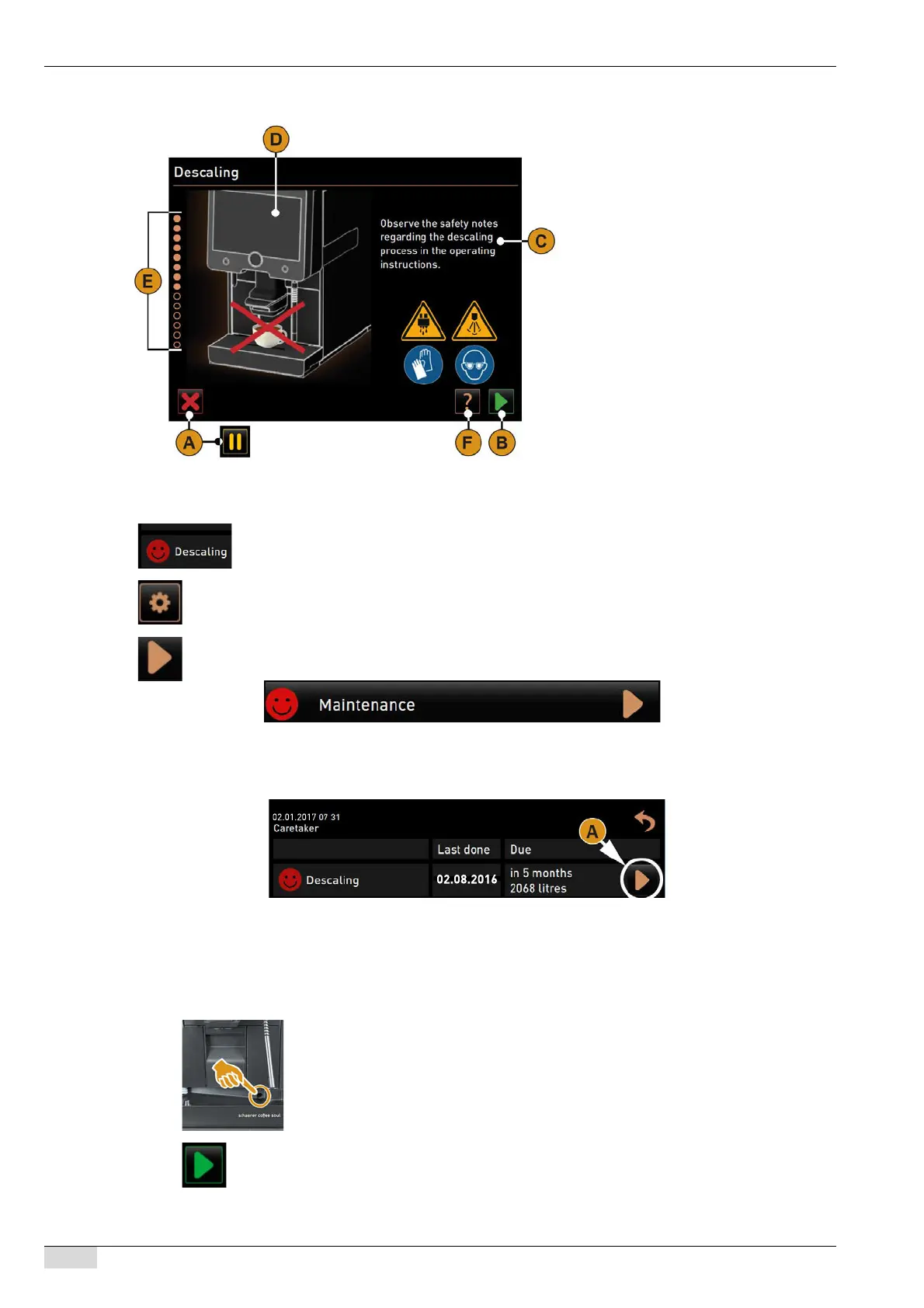 See "Service maintenance" - "Descaling preparation" - "Checking the waster water out-