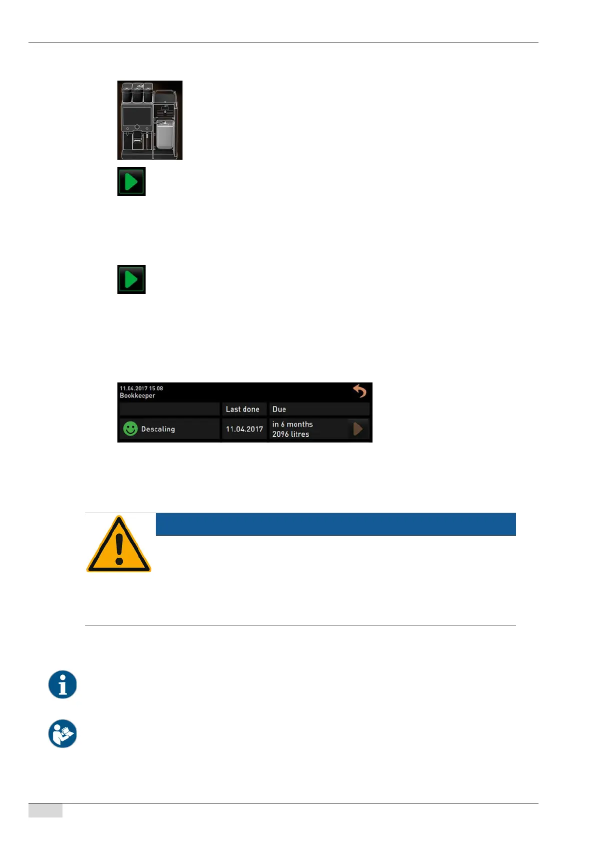 caling process. The decalcification cartridge must be completely emptied and rinsed with water after descaling.