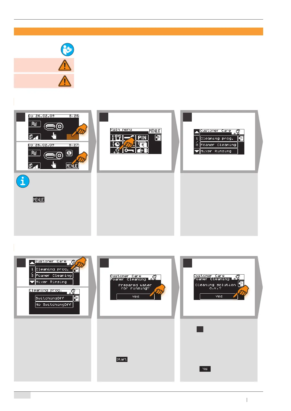 Never reach into the machine or under the beverage outlets during the automatic cleaning!