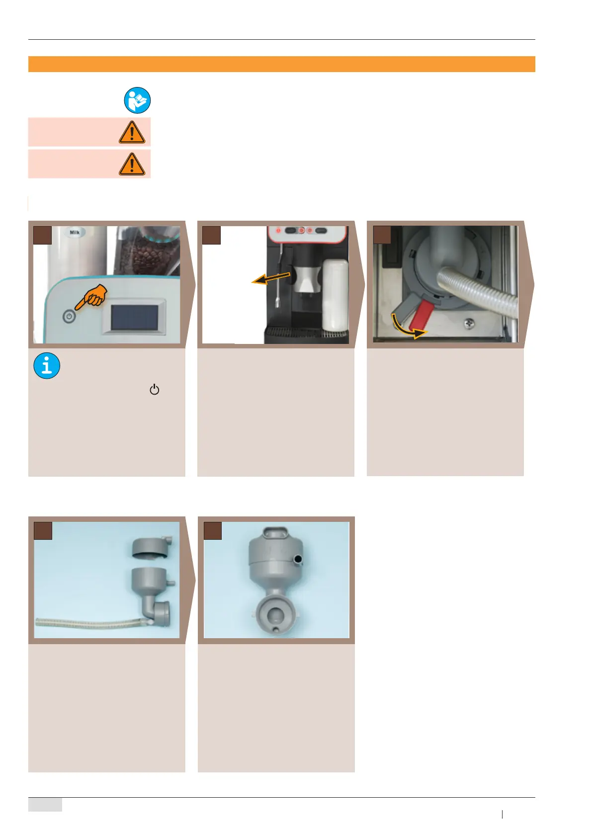 Never reach into the machine or under the beverage outlets during the automatic cleaning!